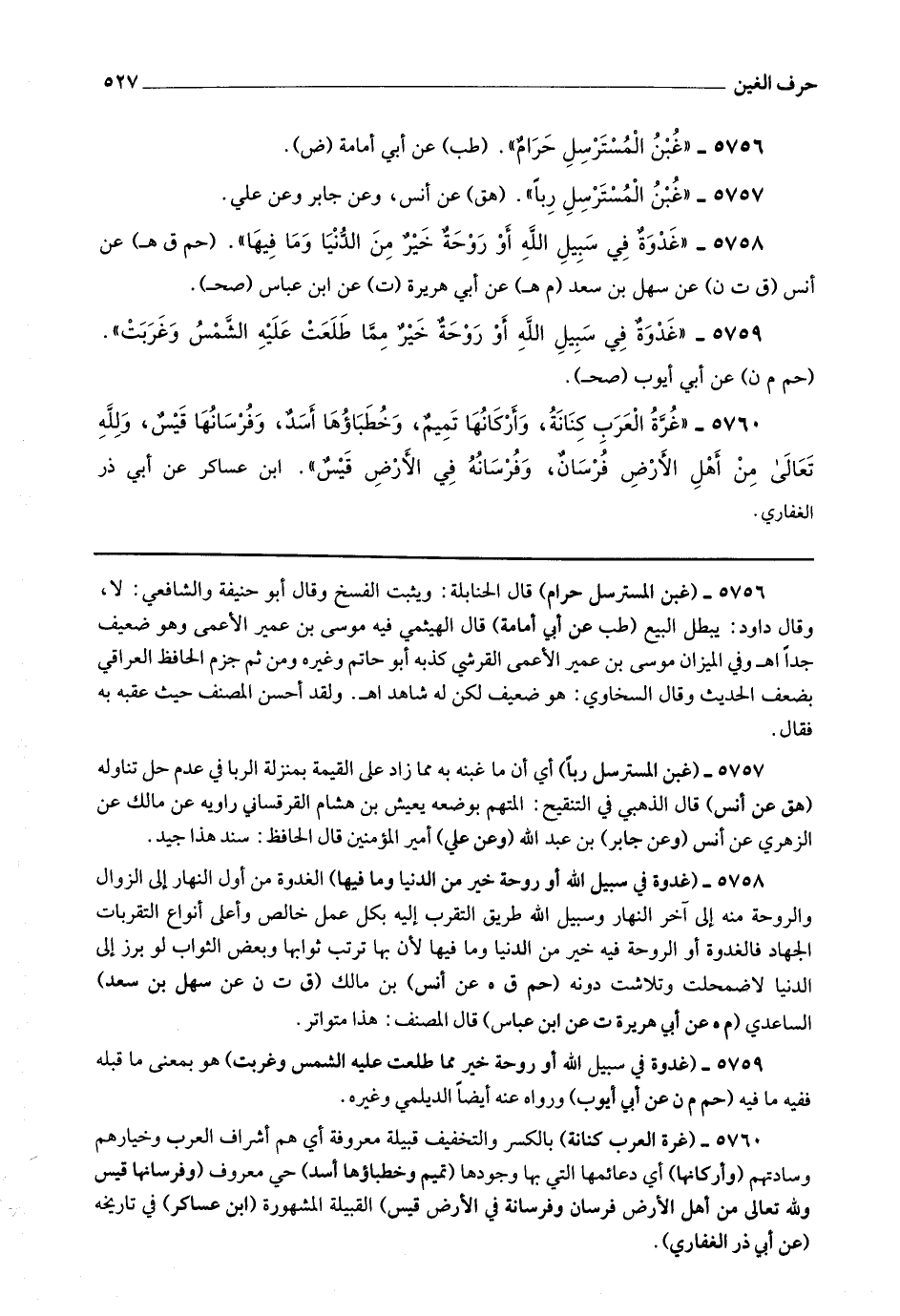5759 - (غدوة في سبيل الله أو روحة خير مما طلعت عليه الشمس وغربت) هو بمعنى ما قبله ففيه ما فيه.