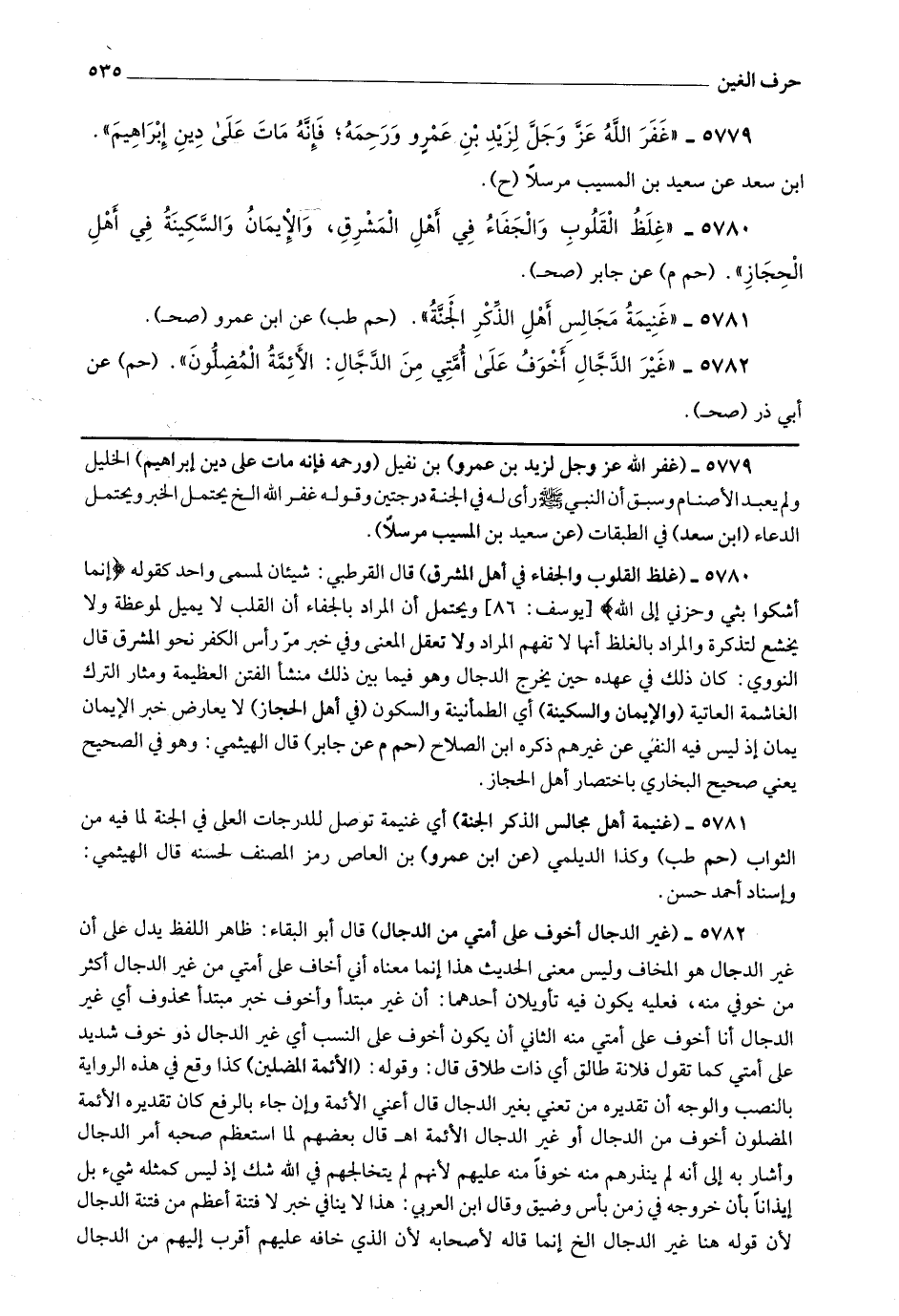 5780 - (غلظ القلوب والجفاء في أهل المشرق) قال القرطبي : شيئان لمسمى واحد كقوله * (إنما أشكو بثي وحزني إلى الله) * ويحتمل أن المراد بالجفاء أن القلب لا يميل لموعظة ولا يخشع لتذكرة والمراد بالغلظ أنها لا تفهم المراد ولا تعقل المعنى وفي خبر مر رأس الكفر نحو المشرق قال النووي : كان ذلك في عهده حين يخرج الدجال وهو فيما بين ذلك منشأ الفتن العظيمة ومثار الترك الغاشمة العاتية (والإيمان والسكينة) أي الطمأنينة والسكون (في أهل الحجاز) لا يعارض خبر الإيمان يمان إذ ليس فيه النفي عن غيرهم ذكره ابن الصلاح.