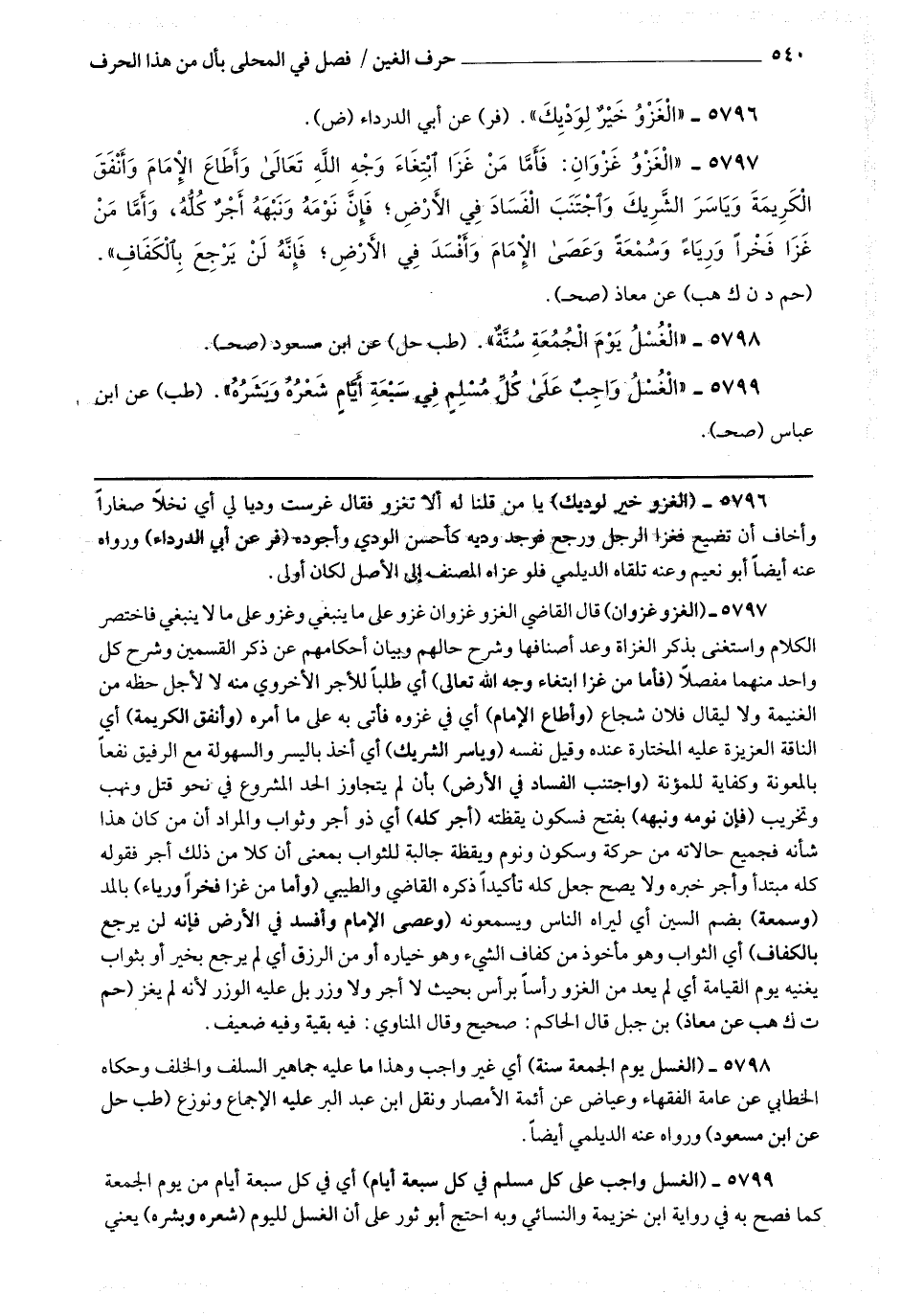 5796 - (الغزو خير لوديك) يا من قلنا له ألا تغزو فقال غرست وديا لي أي نخلا صغارا وأخاف أن تضيع فغزا الرجل ورجع فوجد وديه كأحسن الودى وأجوده.