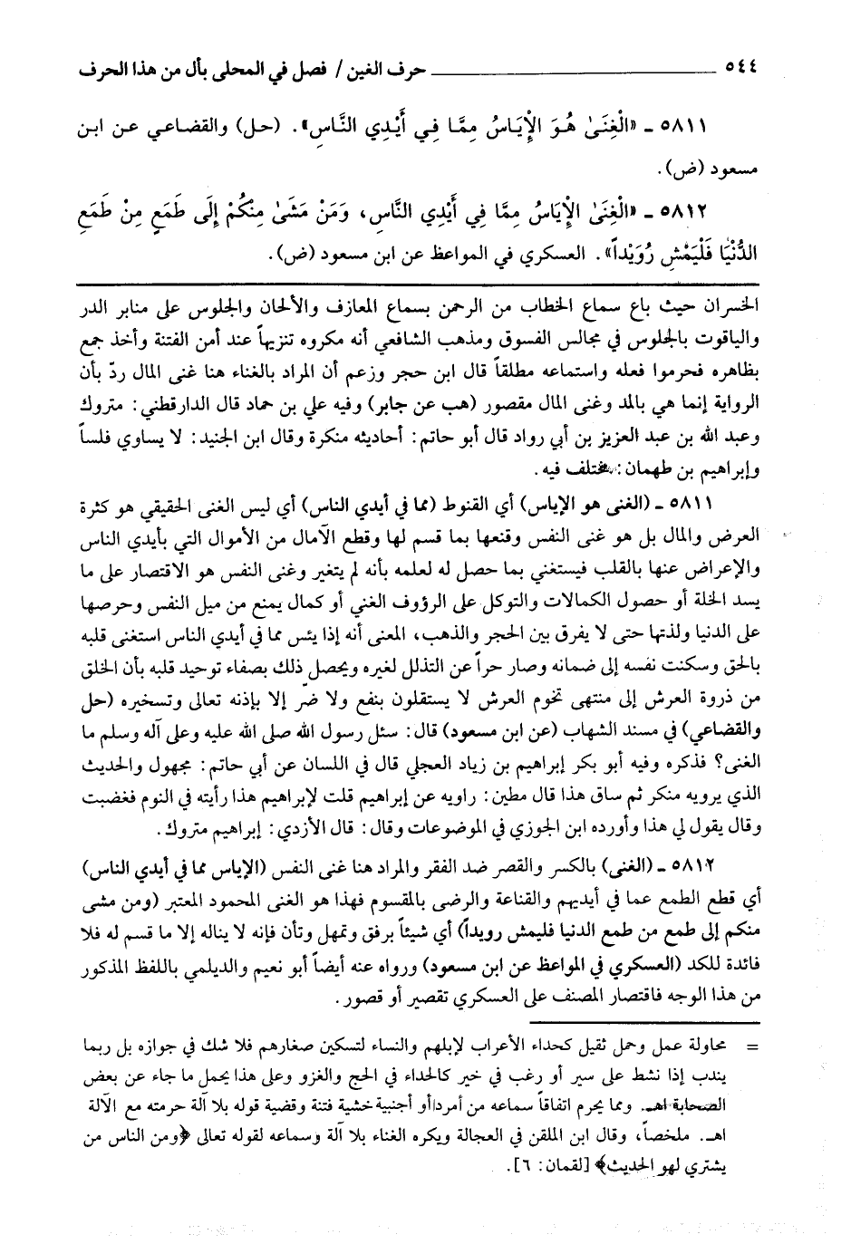5811 - (الغنى هو الإياس) أي القنوط (مما في أيدي الناس) أي ليس الغنى الحقيقي هو كثرة