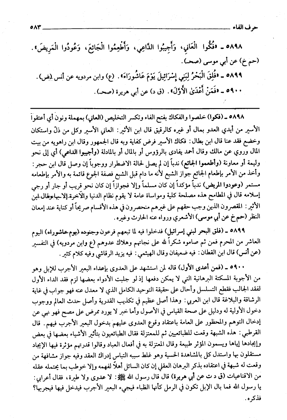 5898 - (فكوا) خلصوا والفكاك بفتح الفاء وتكسر التخليص (العاني) بمهملة ونون أي أعتقوا