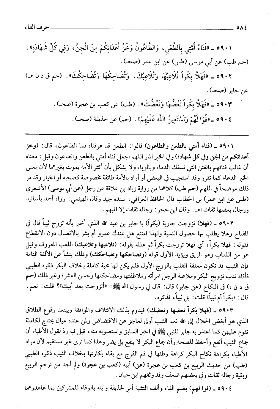 5904 - (فوا لهم) بضم الفاء وألف التثنية أمر لحذيفة وابنه بالوفاء للمشركين بما عاهدوهما