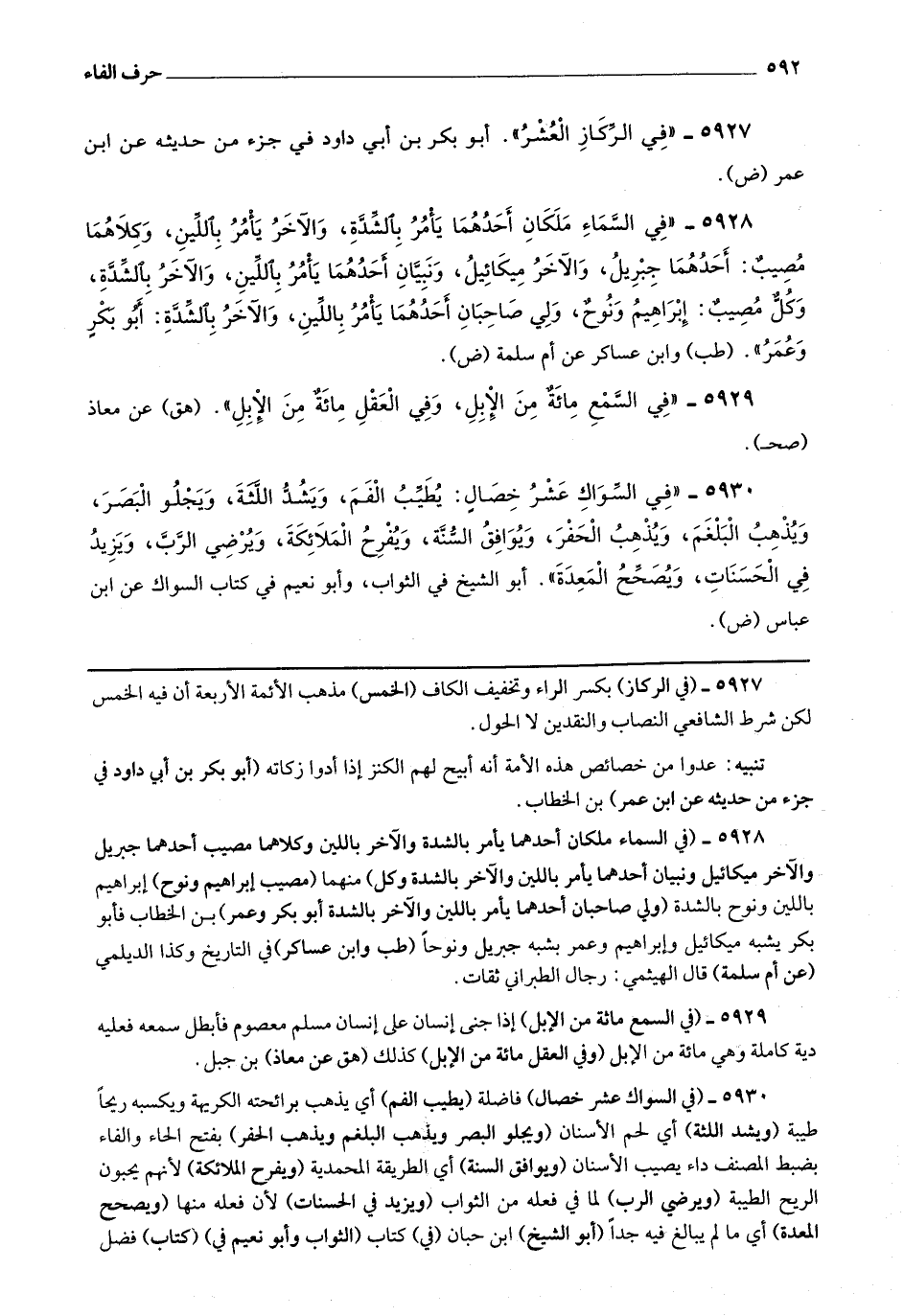 5929 - (في السمع مائة من الإبل) إذا جنى إنسان على إنسان مسلم معصوم فأبطل سمعه فعليه دية كاملة وهي مائة من الإبل (وفي العقل مائة من الإبل) كذلك.