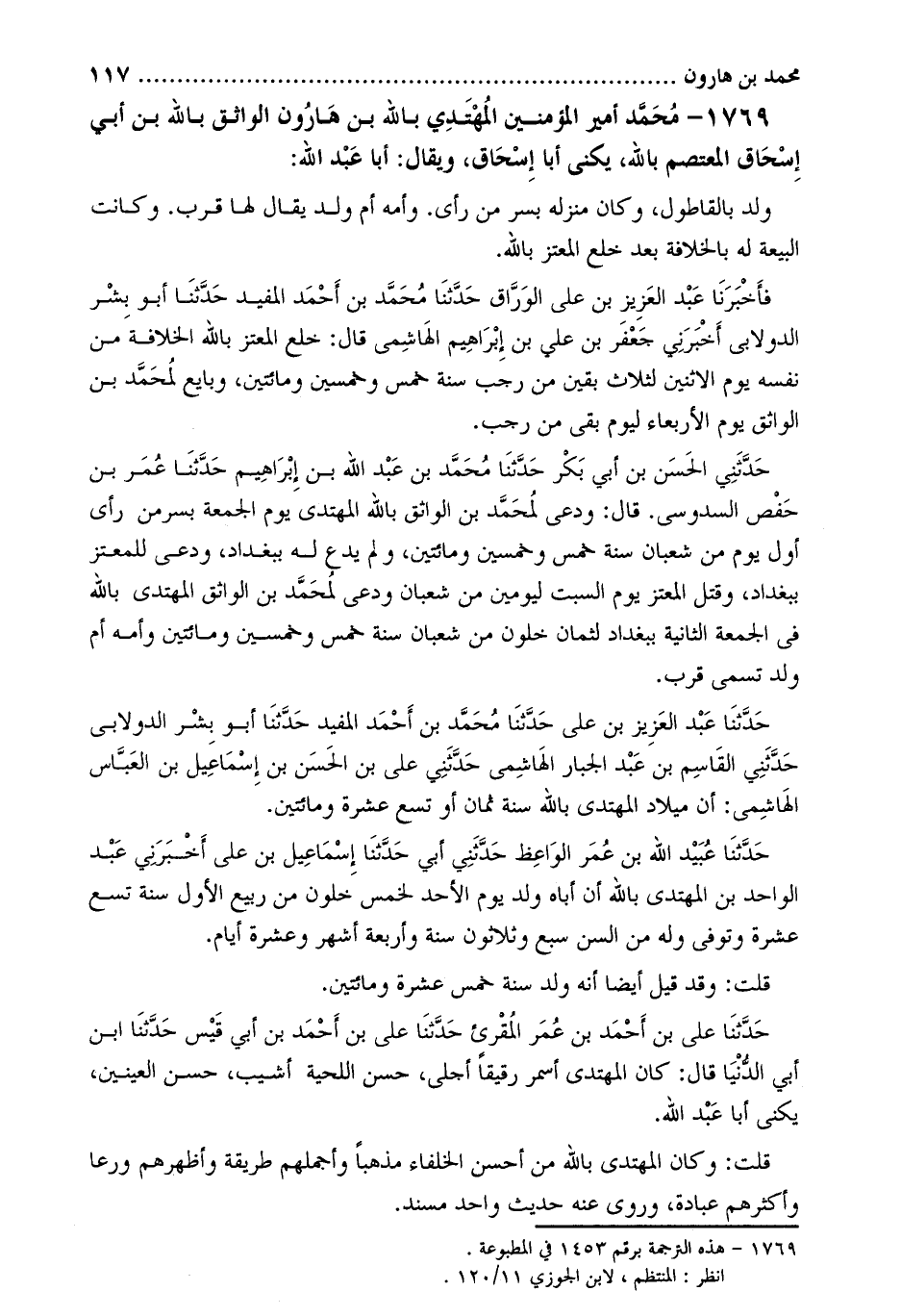 1769- محمد أمير المؤمنين المهتدي باللَّه بْن هارون الواثق باللَّه بْن أَبِي إسحاق المعتصم باللَّه، يكنى أبا إسحاق، ويقال: أبا عبد الله [1] :