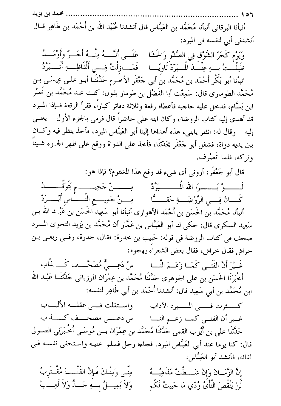 أنبأنا البرقاني أنبأنا محمد بن العباس قَالَ أنشدنا عبيد الله بن أحمد بن طاهر قَالَ أنشدني أبي لنفسه في المبرد: