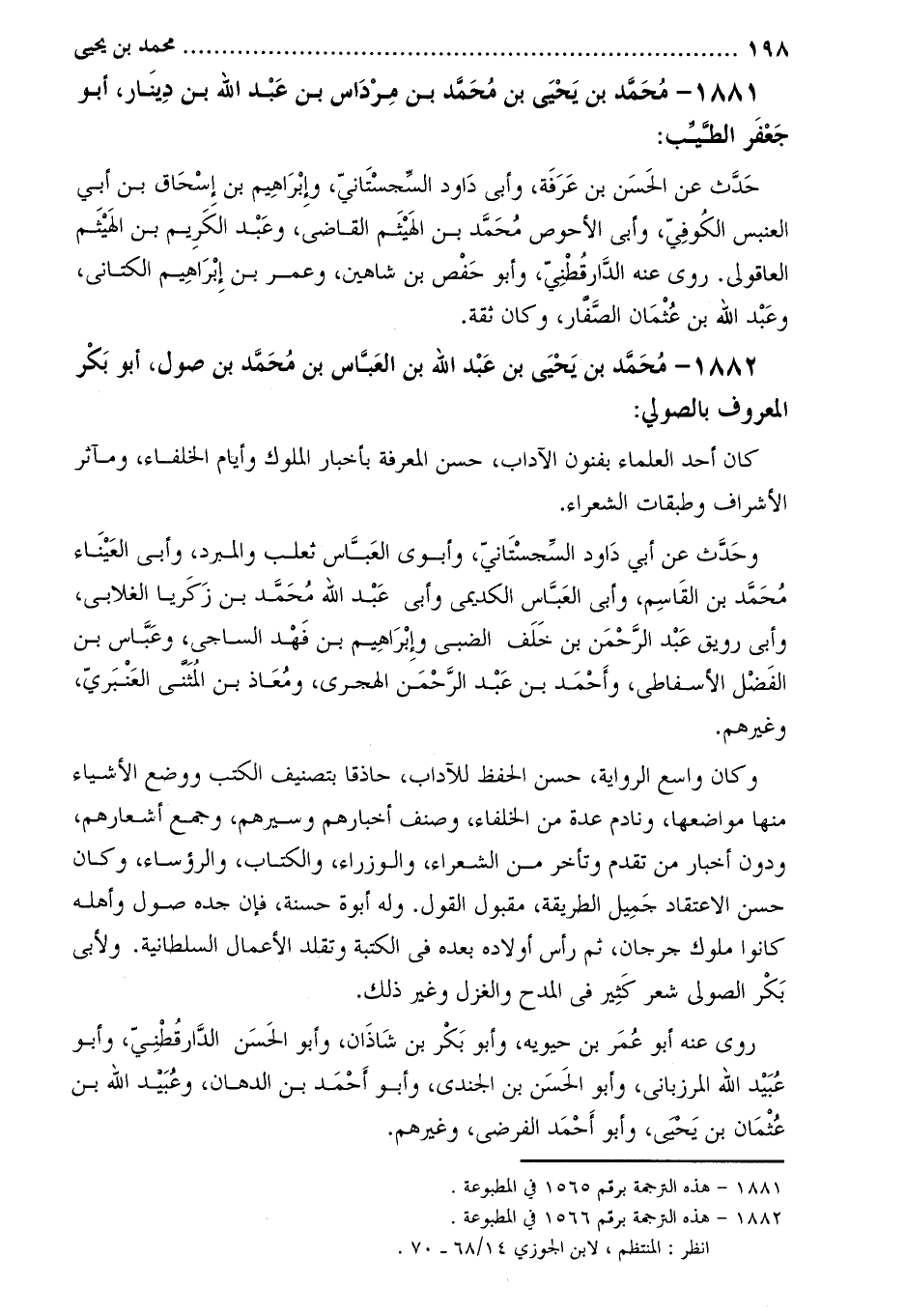 1882- مُحَمَّد بْن يَحْيَى بْن عَبْدِ اللَّهِ بْن العباس بْن مُحَمَّد بن صول، أبو بكر المعروف بالصولي [2] :