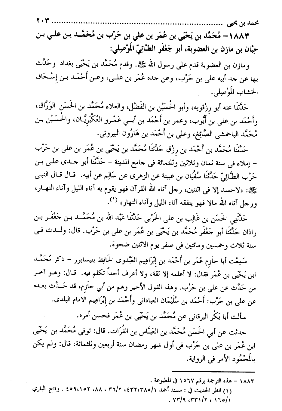1883- مُحَمَّد بْن يَحْيَى بْن عُمَر بْن عَلِيّ بْن حرب بْن مُحَمَّد بْن علي بْن حبان بن مازن بن العضوبة، أبو جعفر الطائي الموصلي [1] :