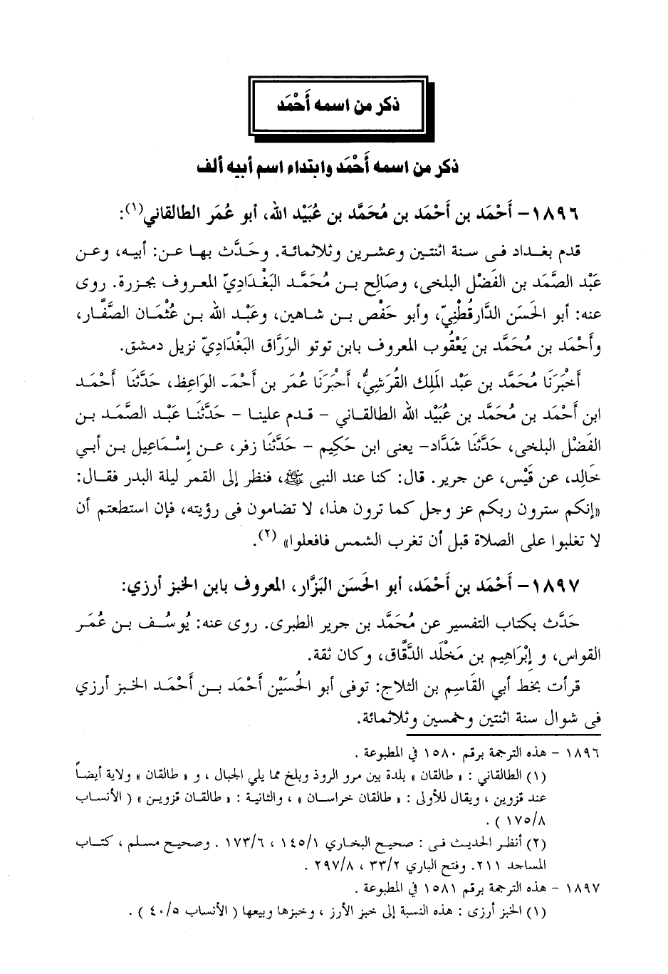 1896-[1] أحمد بْنُ أَحْمَدَ بْنِ مُحَمَّد بْنِ عُبَيْد اللَّهِ، أَبُو عُمَر الطَّالْقَانِيُّ [2] :