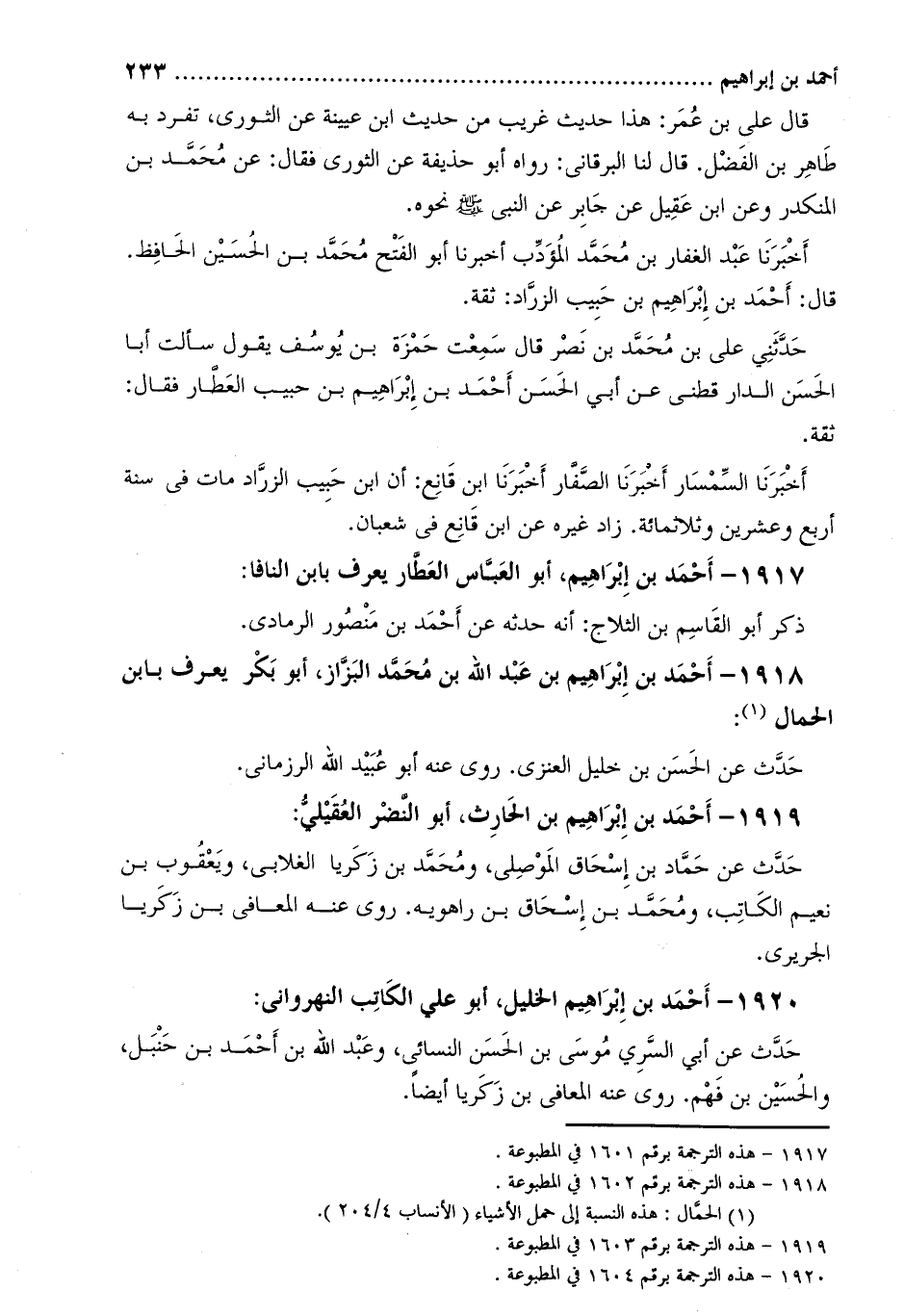 1918-[2] أَحْمَد بْن إِبْرَاهِيم بْن عَبْد اللَّه بْن مُحَمَّد البزاز، أَبُو بَكْر يعرف بابن الحمال [3] :