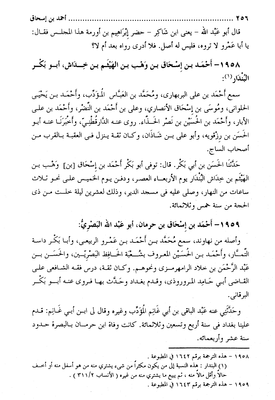 1958-[1] أَحْمَد بْن إِسْحَاق بْن وهب بْن الهيثم بْن خداش، أَبُو بَكْر البندار [2] :