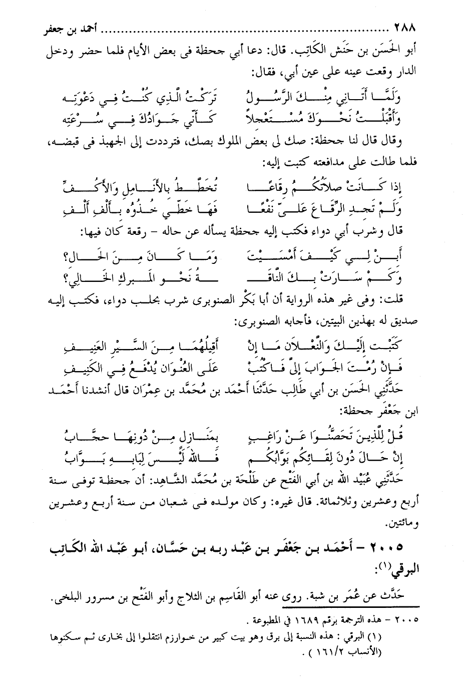 2005-[1] أَحْمَد بْن جعفر بْن عَبْد ربه بْن حسان، أَبُو عَبْد الله الكاتب البرقي [2] :
