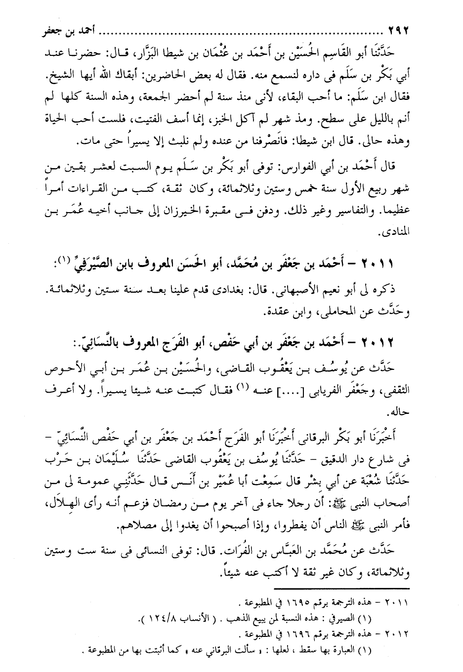 2011-[1] أَحْمَد بْن جعفر بْن مُحَمَّد، أَبُو الْحَسَن الْمَعْرُوف بابن الصيرفي [2] :