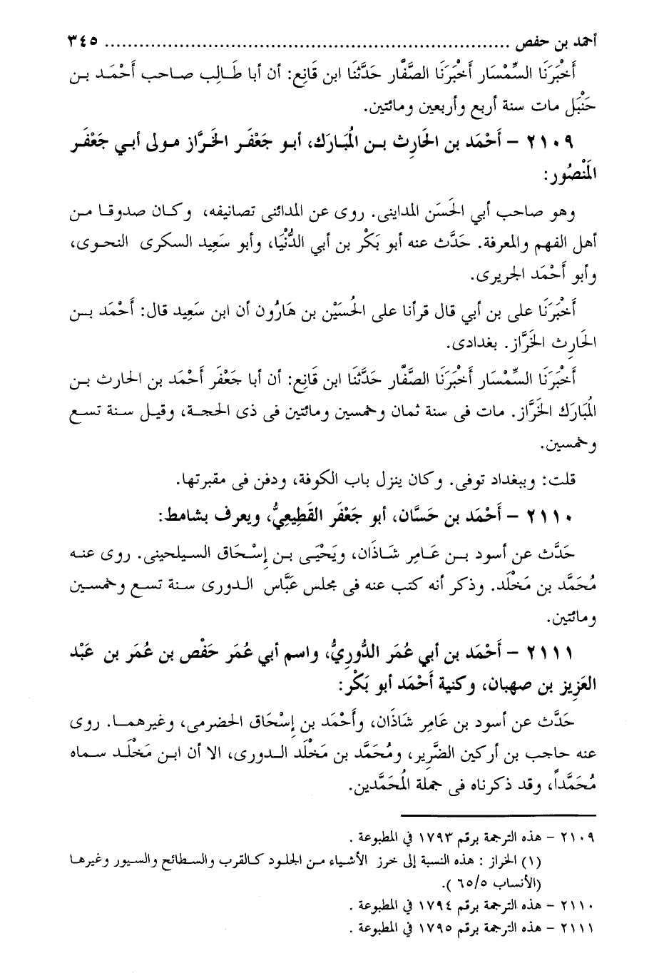 2109-[1] أَحْمَد بْن الحارث بْن المبارك، أَبُو جعفر الخراز [2] مولى أَبِي جعفر المنصور: