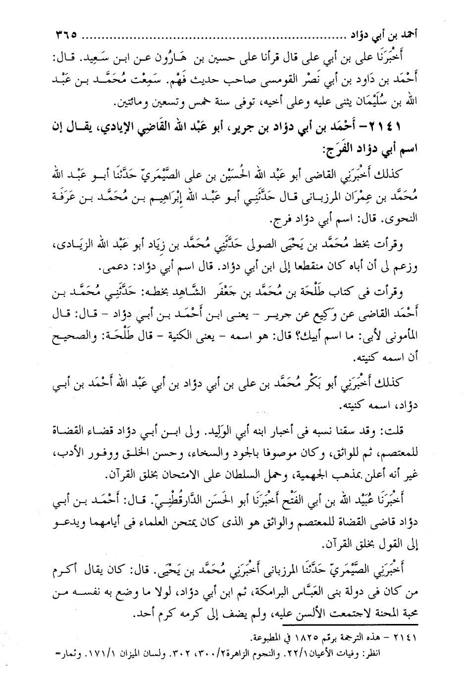 2141- أَحْمَد بْن أَبِي دؤاد بن جرير، أَبُو عَبْد اللَّه الْقَاضِي الإيادي، يقال إن اسم أَبِي دؤاد الفرج [1] :