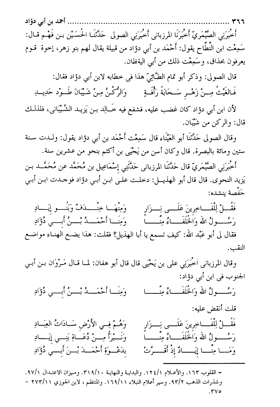 أَخْبَرَنِي الصيمري قَالَ حَدَّثَنَا المرزباني حَدَّثَنِي إِسْمَاعِيل بْن مُحَمَّد عَنْ مُحَمَّد بْن يَزِيد النحوي. قَالَ قَالَ أَبُو الهذيل: دخلت على ابن أبي دؤاد فوجدت ابن أَبِي حفصة ينشده: