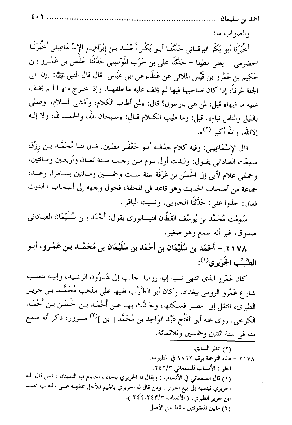 2178-[2] أَحْمَد بْن سُلَيْمَان بْن أَحْمَدَ بْن سُلَيْمَان بْن مُحَمَّد بْن عمرو، أَبُو الطَّيِّب الجريري [3] :
