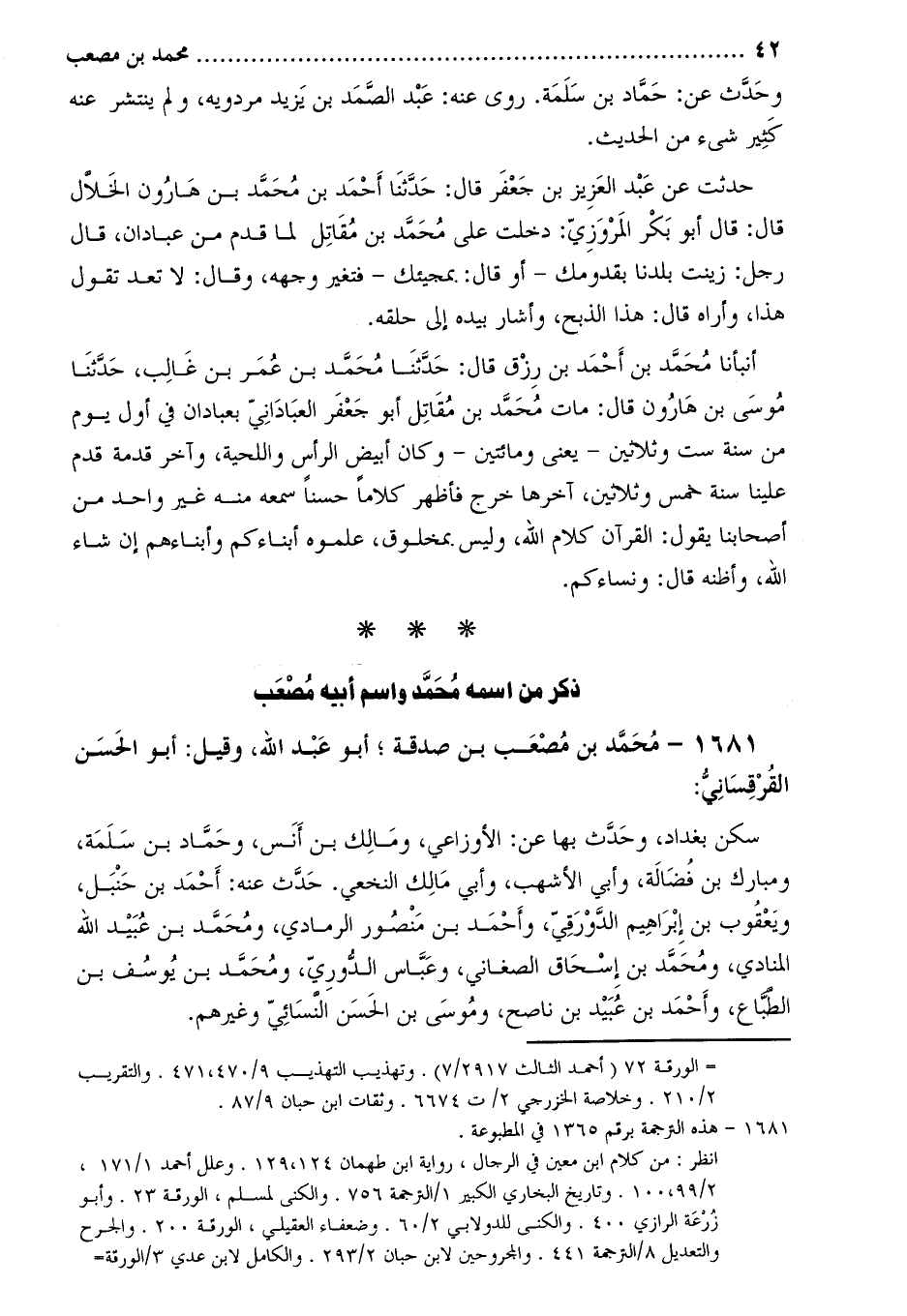 1681- محمد بن مصعب بن صدقة؛ أبو عبد الله، وقيل: أبو الحسن القرقساني [1] :