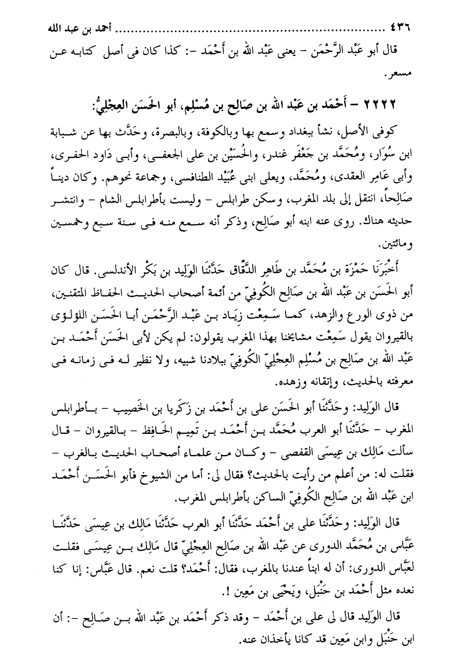 2222- أَحْمَد بْن عَبْد اللَّه بْن صالح بْن مُسْلِم، أَبُو الْحَسَن العجلي [1] :