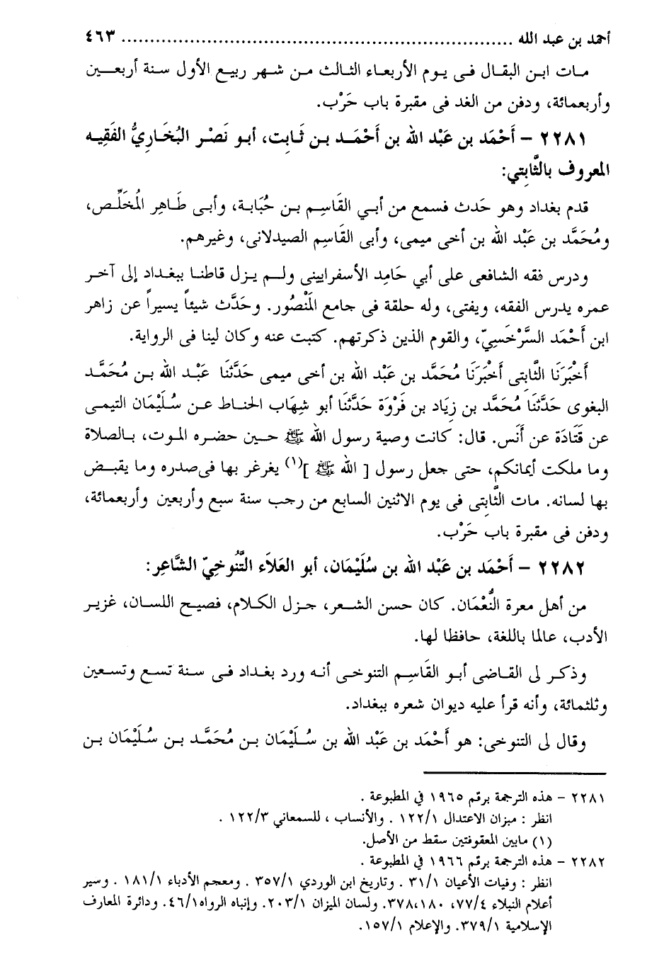 2281- أَحْمَد بْن عَبْد اللَّه بْن أَحْمَدَ بْن ثابت، أَبُو نصر البخاري الْفَقِيه الْمَعْرُوف بالثابتي [1] :