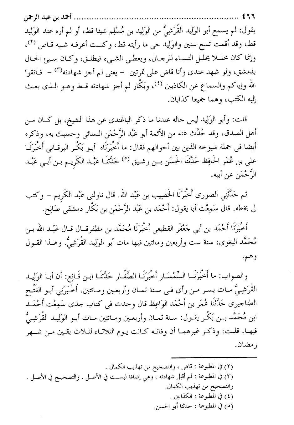 يَقُولُ: لم يسمع أَبُو الوليد الْقُرَشِيّ من الوليد بْن مُسْلِم شيئا قط، أو لم أره عند الوليد قط، وقد أقمت تسع سنين والوليد حي ما رأيته قط، وكنت أعرفه شبه قاص [1] ، وإنما كَانَ محللا يحلل النساء للرجال، ويعطى الشيء فيطلق، وَكَانَ سيئ الحال بدمشق، ولو شهد عندي وأنا قاض على تمرتين- يعنى لم أجز شهادته [2]- فاتقوا الله وإياكم والسماع عن الكاذبين [3] ، وبكار لم أجز شهادته قط وهو الذي بعث إليه الكتب، وهما جميعا كذابان.