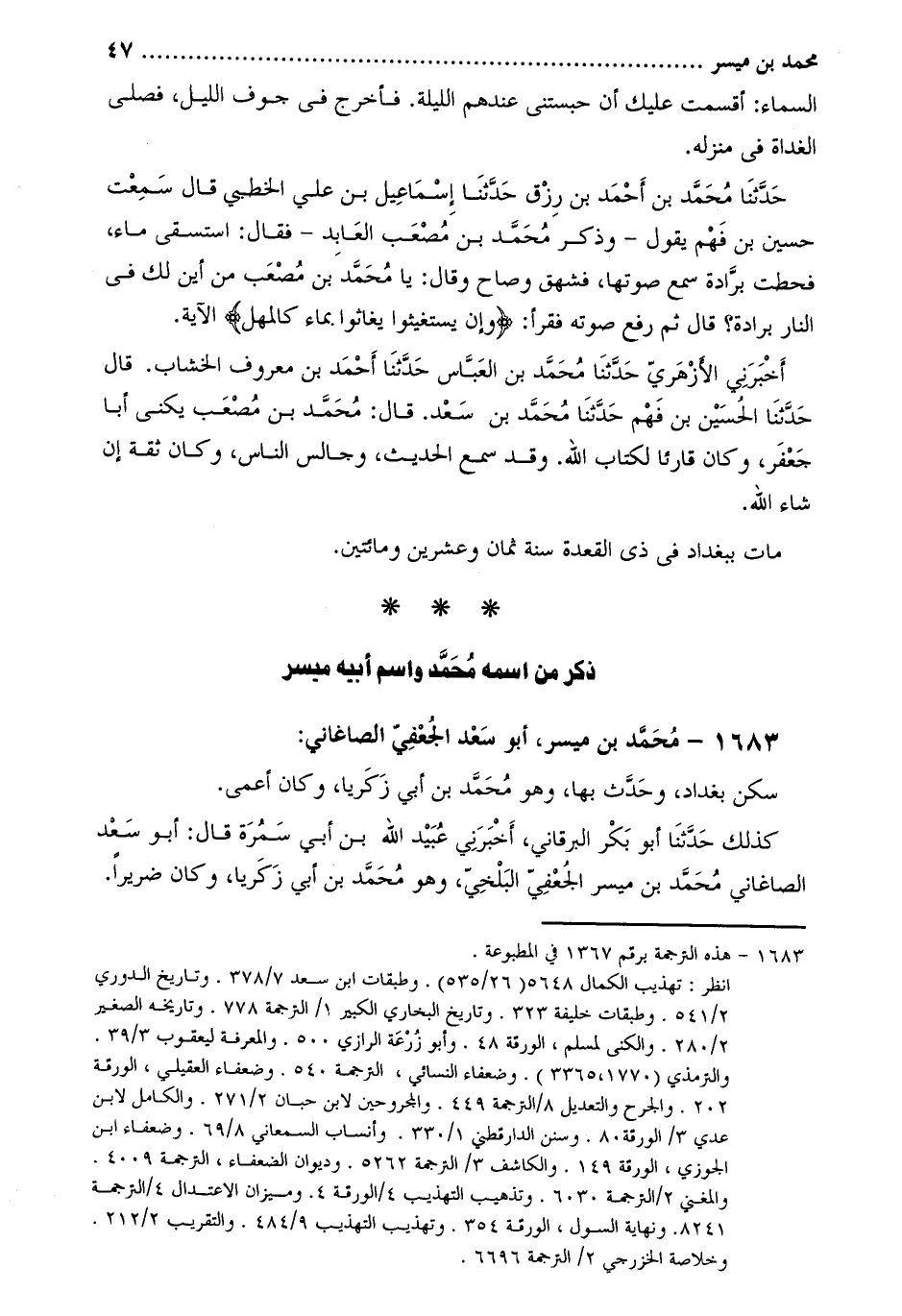 1683- محمد بن ميسر، أبو سعد الجعفي الصاغاني [1] :