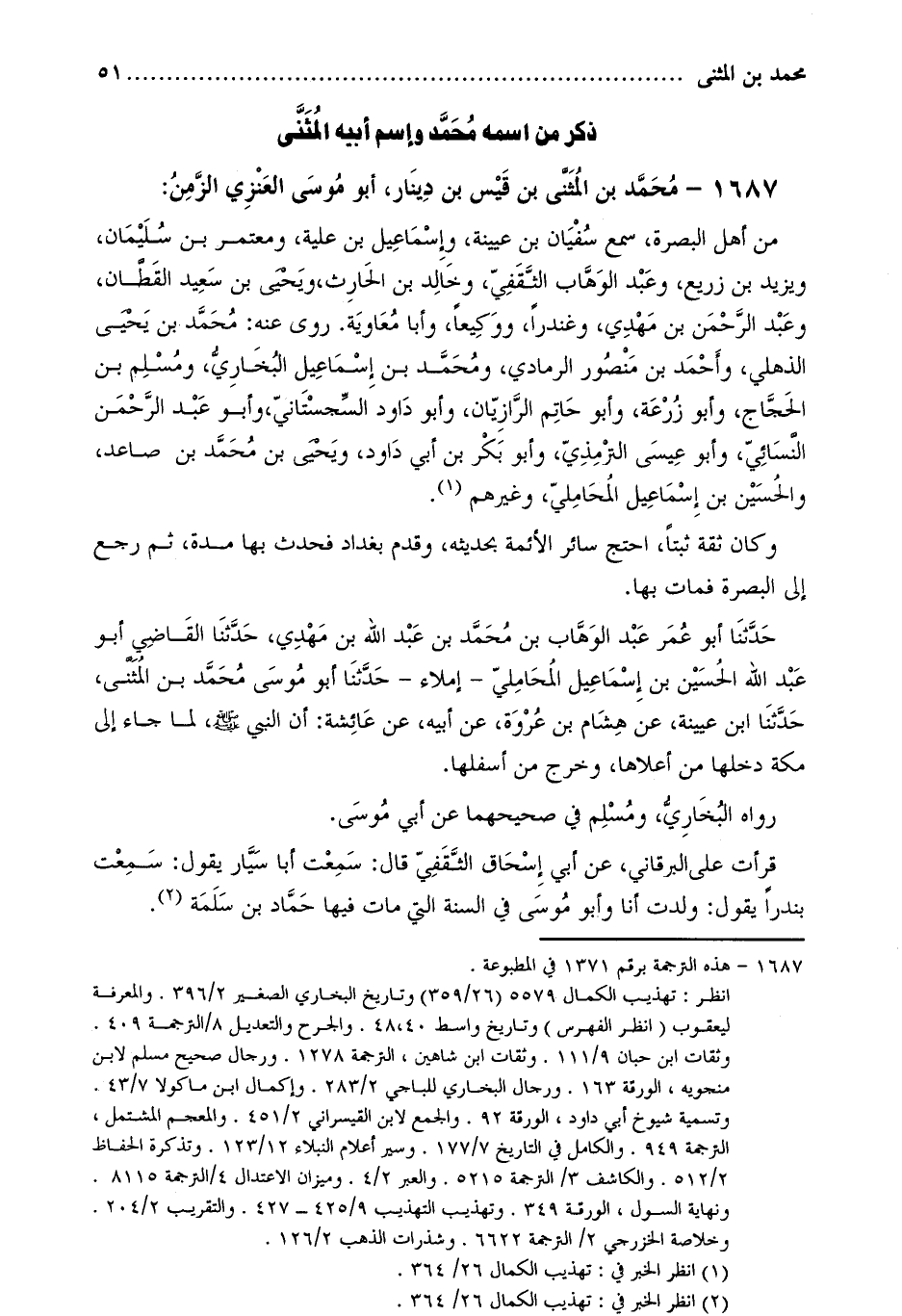 1687- محمد بن المثنى بن قيس بن دينار، أبو موسى العنزي الزمن [1] :