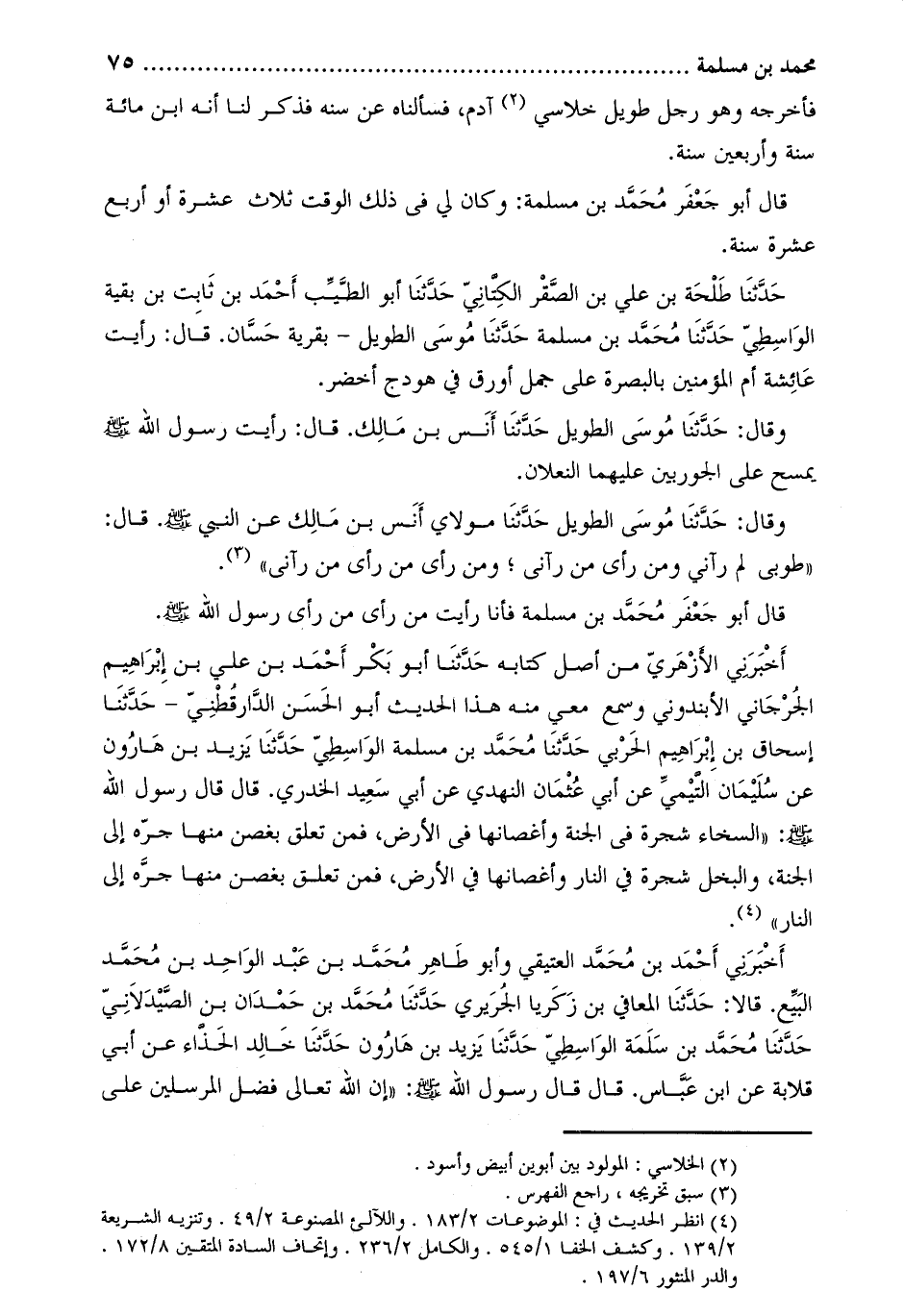 . قَالَ أَبُو جَعْفَرٍ مُحَمَّدُ بْنُ مَسْلَمَةَ فَأَنَا رَأَيْتُ مَنْ رَأَى مَنْ رَأَى رَسُولَ اللَّهِ صَلَّى اللَّهُ عَلَيْهِ وَسَلَّمَ.