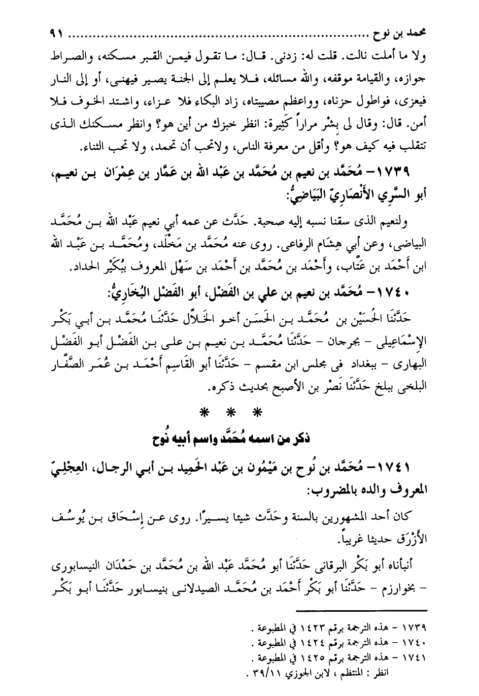 1741- محمد بن نوح بن ميمون بن عبد الحميد بن أبي الرجال، العجلي المعروف والده بالمضروب [3] :