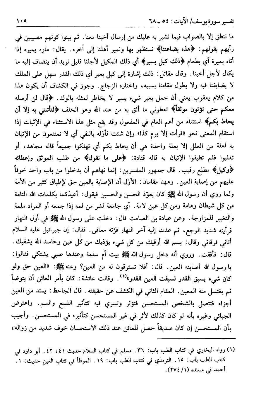 (1) رواه البخاري في كتاب الطب باب: 36. مسلم في كتاب السلام حديث 41، 42. أبو داود في كتاب الطب باب: 15. الترمذي في كتاب الطب باب: 19. الموطأ في كتاب العين حديث: 1.