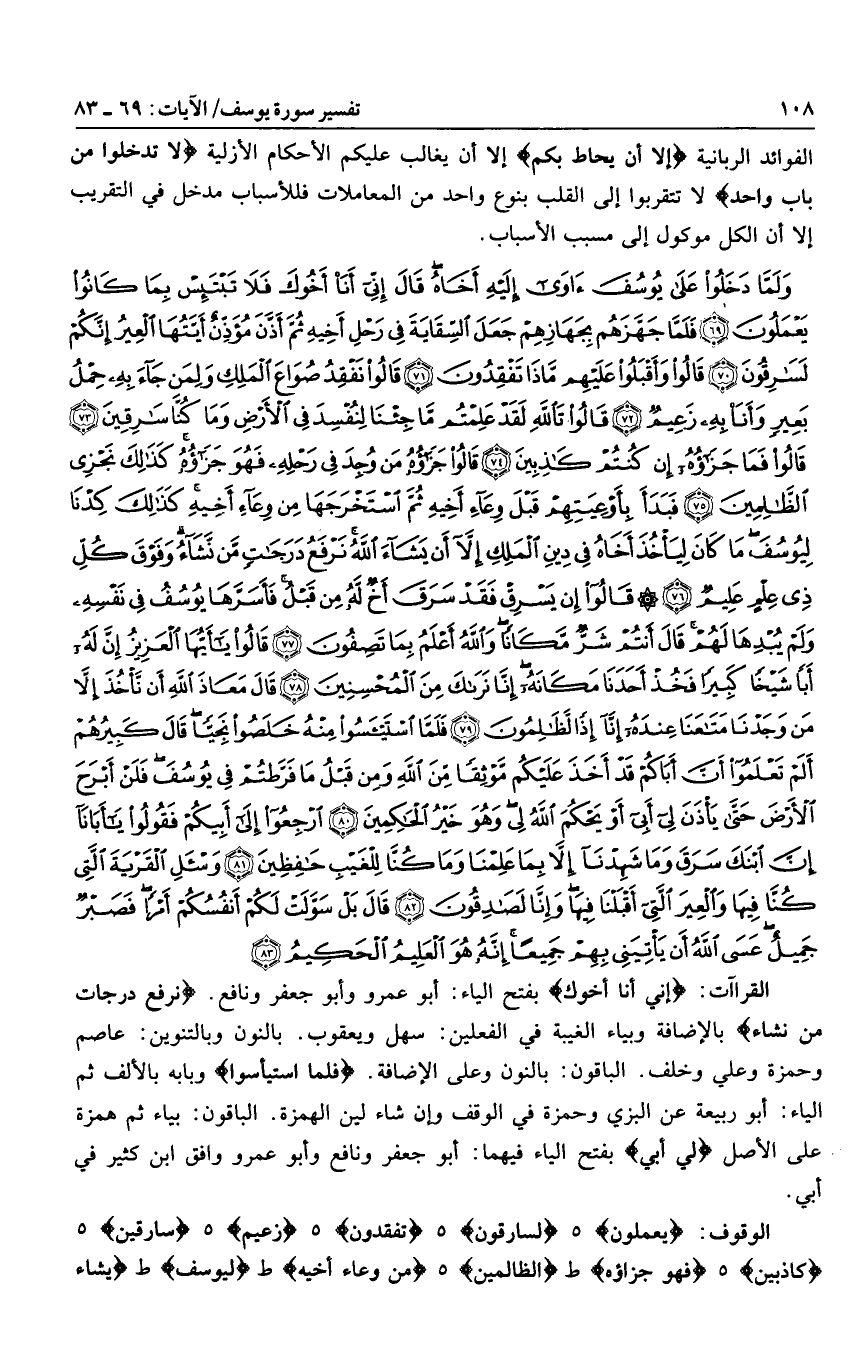 يَعْمَلُونَ هـ لَسارِقُونَ هـ تَفْقِدُونَ هـ زَعِيمٌ هـ سارِقِينَ هـ كاذِبِينَ هـ فَهُوَ جَزاؤُهُ ط الظَّالِمِينَ هـ مِنْ وِعاءِ أَخِيهِ ط لِيُوسُفَ ط يَشاءَ