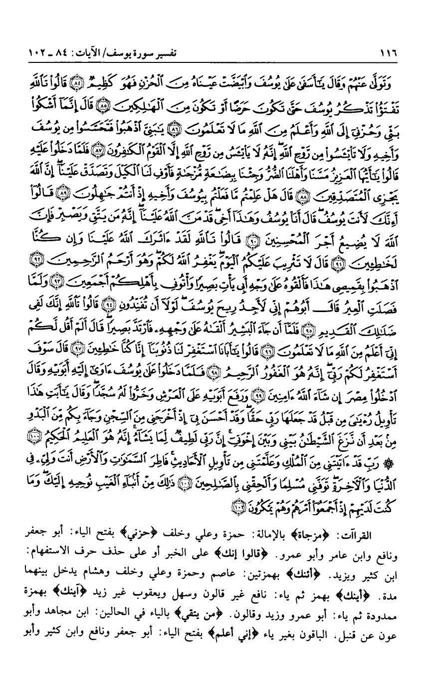 [سورة يوسف (12) : الآيات 84 الى 101]