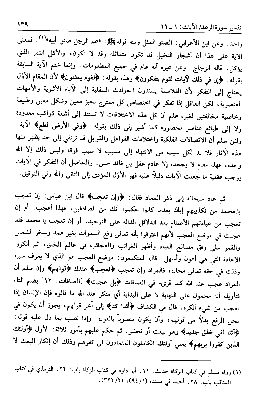 ولئن سلم أن الاتصالات الفلكية واختلافات الفواعل والقوابل قد ترتقي إلى حد يظهر منها هذه الآثار فلا بد لكل سبب من الانتهاء إلى مسبب لا سبب فوقه وليس ذلك إلا الله وحده، فهذا مقام لا يجحده إلا عادم عقل بل فاقد حس. والحاصل أن التفكر في الآيات يوجب عقلية ما جعلت الآيات دليلا عليه فهو الأوّل المؤدي إلى الثاني والله ولي التوفيق.