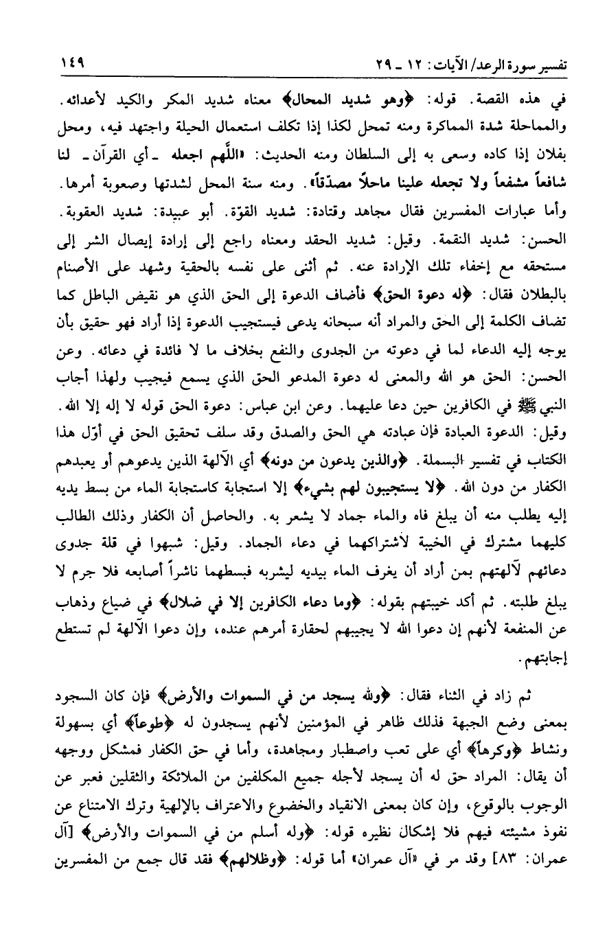 قوله: وَهُوَ شَدِيدُ الْمِحالِ معناه شديد المكر والكيد لأعدائه.