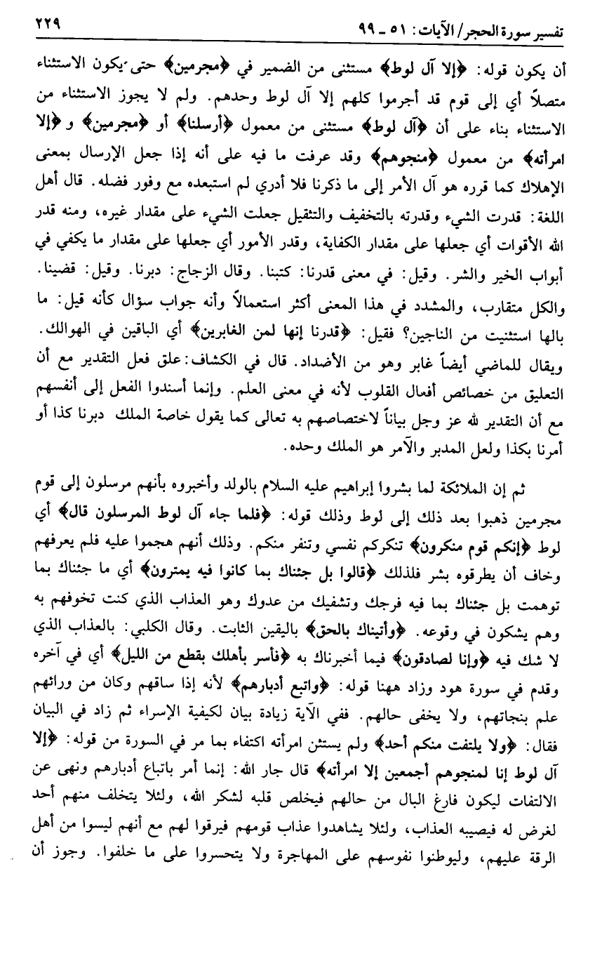 أن يكون قوله: إِلَّا آلَ لُوطٍ مستثنى من الضمير في مُجْرِمِينَ حتى يكون الاستثناء متصلا أي إلى قوم قد أجرموا كلهم إلا آل لوط وحدهم. ولم لا يجوز الاستثناء من الاستثناء بناء على أن آلَ لُوطٍ مستثنى من معمول أُرْسِلْنا أو مُجْرِمِينَ وإِلَّا امْرَأَتَهُ من معمول لَمُنَجُّوهُمْ وقد عرفت ما فيه على أنه إذا جعل الإرسال بمعنى الإهلاك كما قرره هو آل الأمر إلى ما ذكرنا فلا أدري لم استبعده مع وفور فضله. قال أهل اللغة: قدرت الشيء وقدرته بالتخفيف والتثقيل جعلت الشيء على مقدار غيره، ومنه قدر الله الأقوات أي جعلها على مقدار الكفاية، وقدر الأمور أي جعلها على مقدار ما يكفي في أبواب الخير والشر. وقيل: في معنى قدرنا: كتبنا. وقال الزجاج: دبرنا. وقيل: قضينا.
