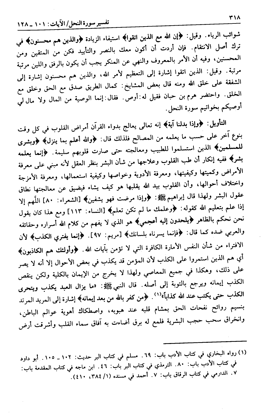 (1) رواه البخاري في كتاب الأدب باب: 69. مسلم في كتاب البر حديث: 102- 105. أبو داود في كتاب الأدب باب: 80. الترمذي في كتاب البر باب: 46. ابن ماجه في كتاب المقدمة باب: