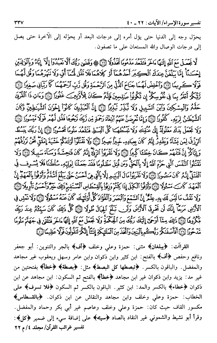 [سورة الإسراء (17) : الآيات 22 الى 40]