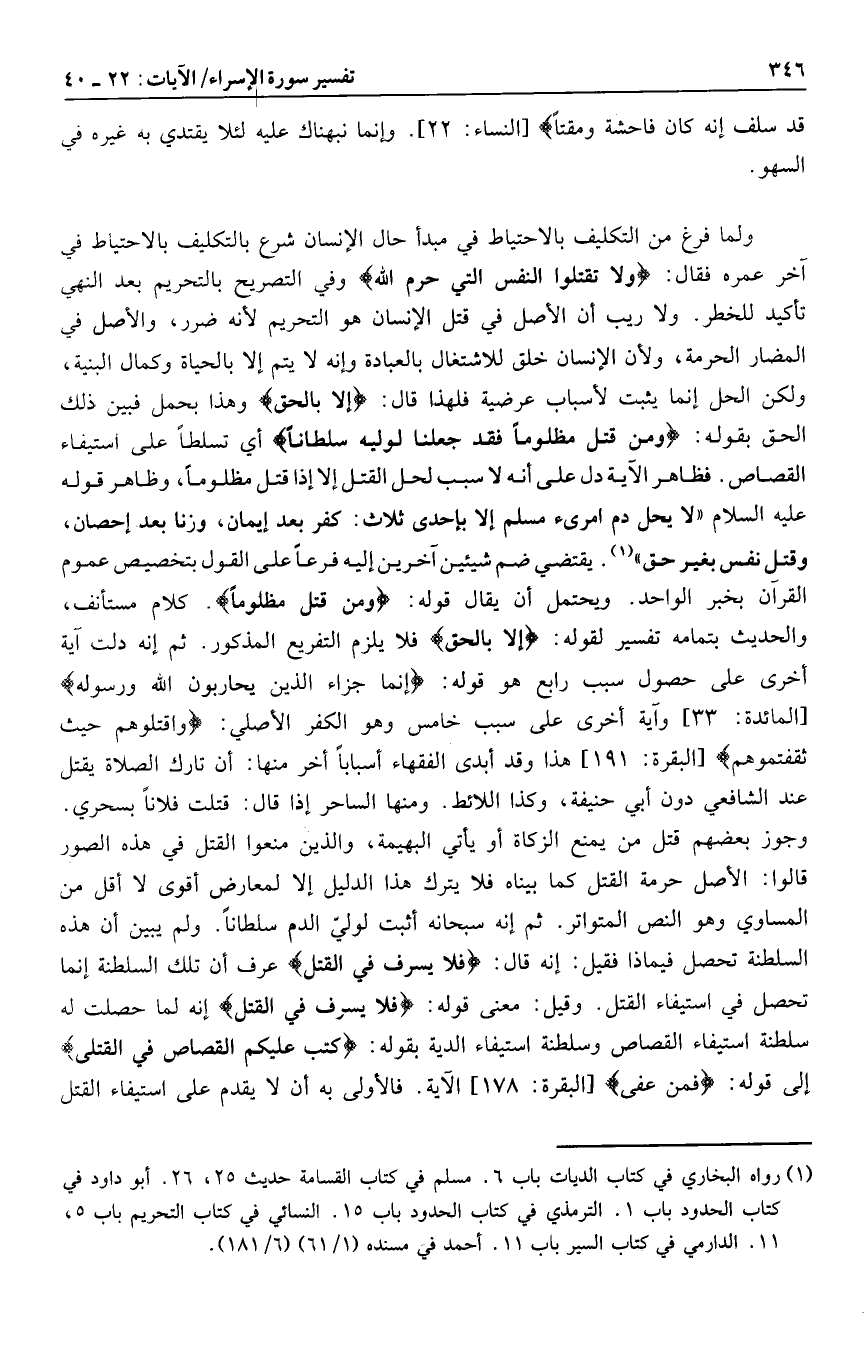 (1) رواه البخاري في كتاب الديات باب 6. مسلم في كتاب القسامة حديث 25، 26. أبو داود في كتاب الحدود باب 1. الترمذي في كتاب الحدود باب 15. النسائي في كتاب التحريم باب 5، 11. الدارمي في كتاب السير باب 11. أحمد في مسنده (1/ 61) (6/ 181) .