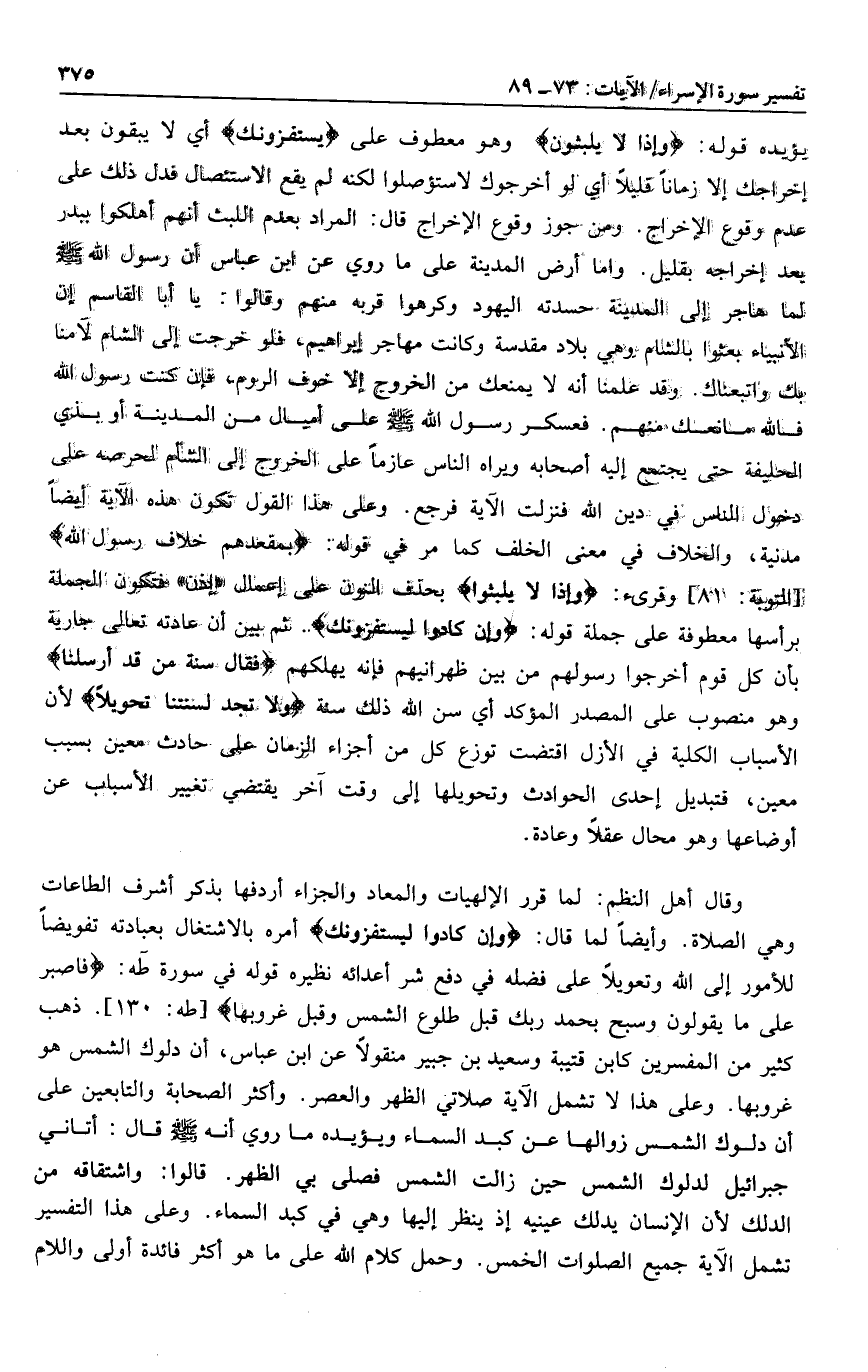 وقال أهل النظم: لما قرر الإلهيات والمعاد والجزاء أردفها بذكر أشرف الطاعات وهي الصلاة. وأيضا لما قال: وَإِنْ كادُوا لَيَسْتَفِزُّونَكَ أمره بالاشتغال بعبادته تفويضا للأمور إلى الله وتعويلا على فضله في دفع شر أعدائه نظيره قوله في سورة طه: فَاصْبِرْ عَلى ما يَقُولُونَ وَسَبِّحْ بِحَمْدِ رَبِّكَ قَبْلَ طُلُوعِ الشَّمْسِ وَقَبْلَ غُرُوبِها [طه: 130] . ذهب كثير من المفسرين كابن قتيبة وسعيد بن جبير منقولا عن ابن عباس، أن دلوك الشمس هو غروبها. وعلى هذا لا تشمل الآية صلاتي الظهر والعصر. وأكثر الصحابة والتابعين على أن دلوك الشمس زوالها عن كبد السماء ويؤيده ما