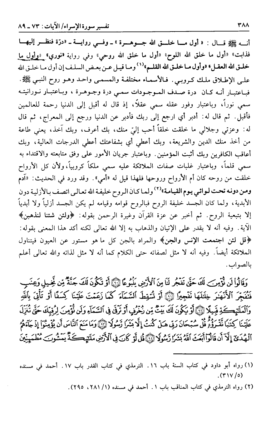 وما قيل عن بعض السلف إن أول ما خلق الله على الإطلاق ملك كروبي. فالأسماء مختلفة والمسمى واحد وهو روح النبي صلى الله عليه وسلم.