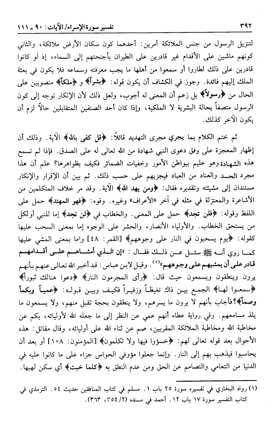 (1) رواه البخاري في تفسيره سورة 25 باب 1. مسلم في كتاب المنافقين حديث 54. الترمذي في كتاب التفسير سورة 17 باب 12. أحمد في مسنده (2/ 354، 363) .