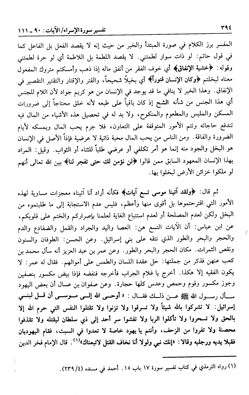 (1) رواه الترمذي في كتاب تفسير سورة 17 باب 15. أحمد في مسنده (4/ 239) .