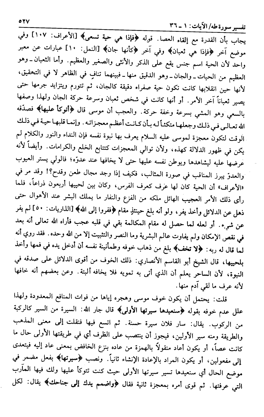 قال الشيخ أبو القاسم الأنصاري: ذلك الخوف من أقوى الدلائل على صدقه في النبوة، لأن الساحر يعلم أن الذي أتى به تمويه فلا يخافه البتة. وعن بعضهم أنه خافها لأنه عرف ما لقي آدم منها.