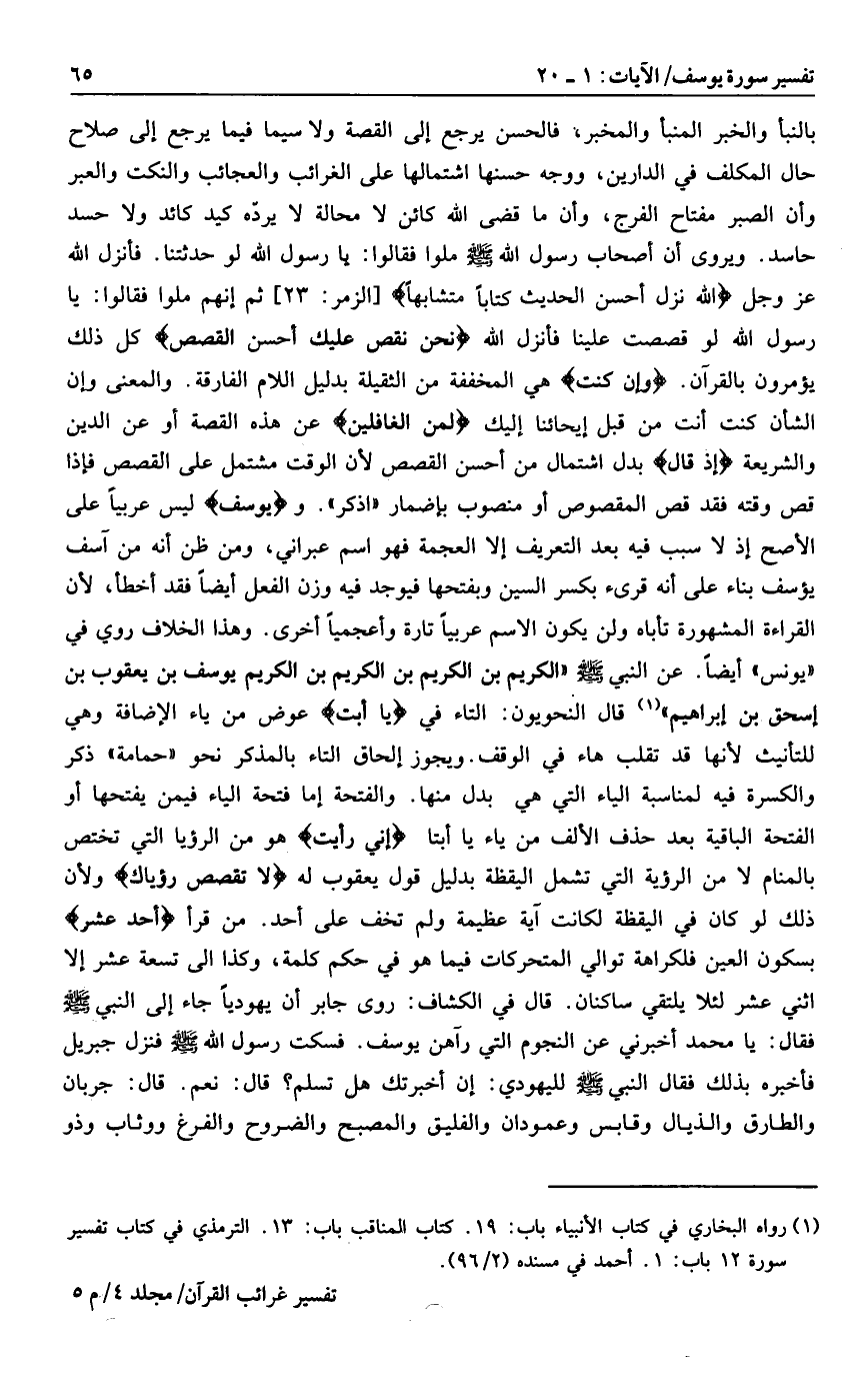(1) رواه البخاري في كتاب الأنبياء باب: 19. كتاب المناقب باب: 13. الترمذي في كتاب تفسير سورة 12 باب: 1. أحمد في مسنده (2/ 96) .