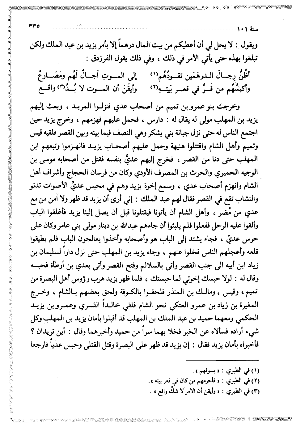 ويقول لا يحل لي أن أعطيكم من بيت المال درهما إلا بأمر يزيد بن عبد الملك ولكن تبلغوا بهذه حتى يأتي الأمر في ذلك وفي ذلك يقول الفرزدق