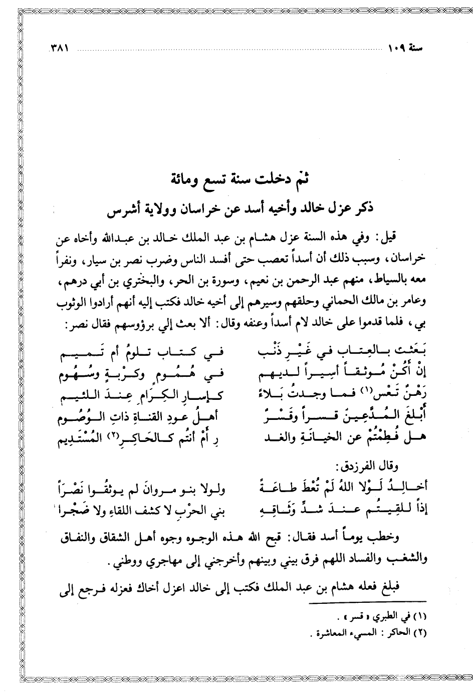 فبلغ فعله هشام بن عبد الملك فكتب إلى خالد اعزل أخاك فعزله فرجع إلى