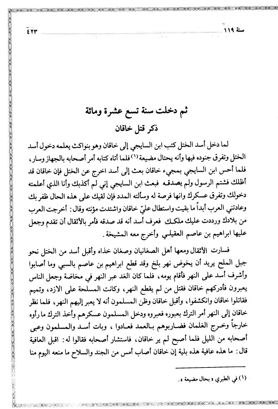 $ ثم دخلت سنة تسع عشرة ومائة $