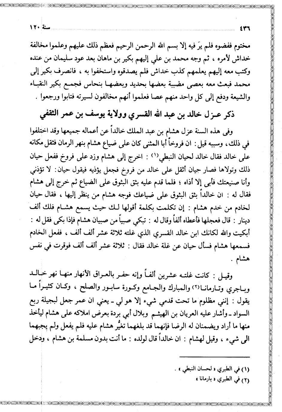 $ ذكر عزل خالد بن عبد الله القسري وولاية يوسف بن عمر الثقفي $