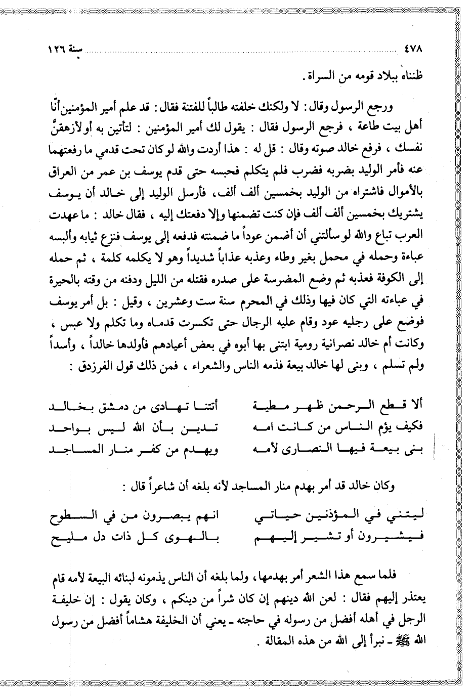 وكان خالد قد أمر بهدم منار المساجد لأنه بلغه أن شاعرا قال