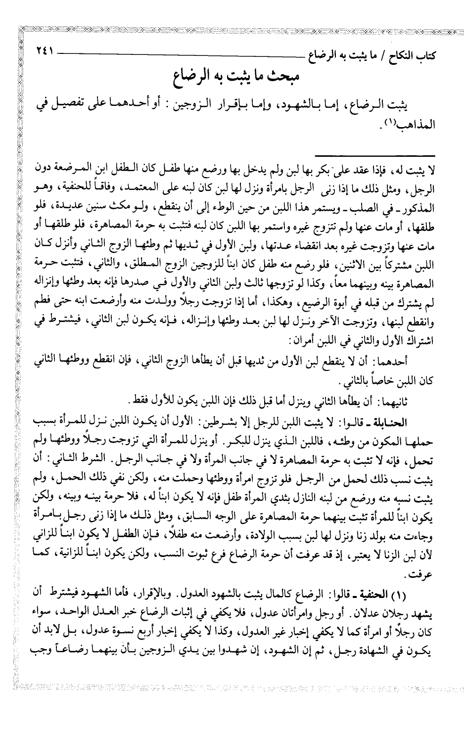 الحنابلة - قالوا: لا يثبت اللبن للرجل إلا بشرطين: الأول أن يكون اللبن نزل للمرأة بسبب حملها المكون من وطئه، فاللبن الذي ينزل للبكر. أو ينزل للمرأة التي تزوجت رجلاً ووطئها ولم تحمل، فإنه لا يثبت به حرمة المصاهرة لا في جانب المرأة ولا في جانب الرجل. الشرط الثاني: أن يثبت نسب ذلك لحمل من الرجل فلو تزوج امرأة ووطئها وحملت منه، ولكن نفي ذلك الحمل، ولم يثبت نسبه منه ورضع من لبنه النازل بثدي المرأة طفل فإنه لا يكون ابناً له، فلا حرمة بينه وبينه، ولكن يكون ابناً للمرأة تثبت بينهما حرمة المصاهرة على الوجه السابق، ومثل ذلك ما إذا زنى رجل بامرأة وجاءت منه بولد زنا ونزل لها لبن بسبب الولادة، وأرضعت منه طفلاً، فإن الطفل لا يكون ابناً للزاني لأن لبن الزنا لا يعتبر، إذ قد عرفت أن حرمة الرضاع فرع ثبوت النسب، ولكن يكون ابناً للزانية، كما عرفت) .