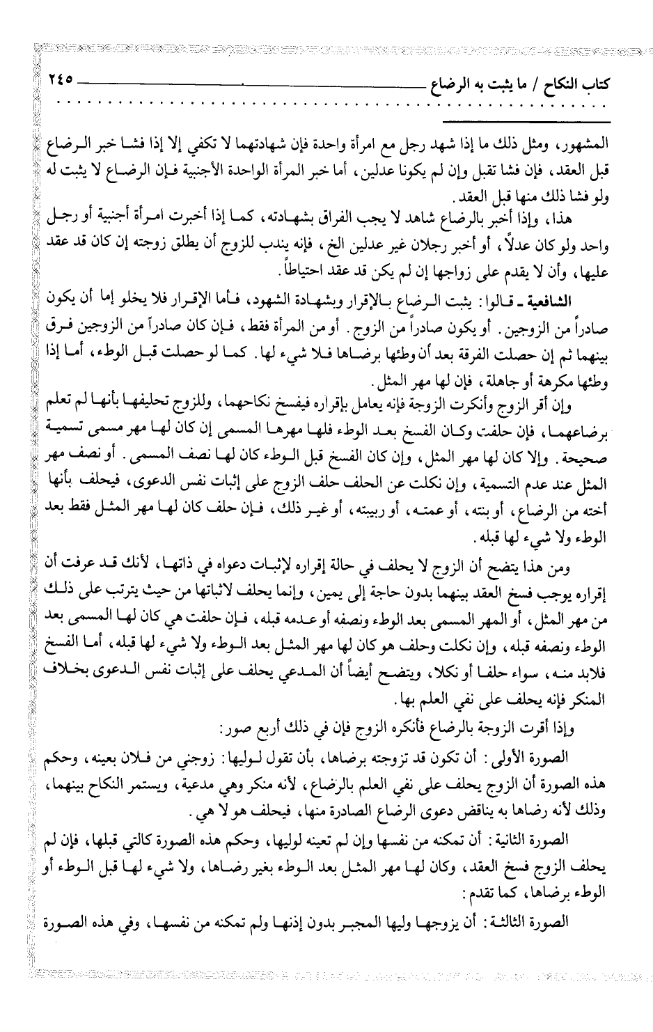 وإذا أقرت الزوجة بالرضاع فأنكره الزوج فإن في ذلك أربع صور: